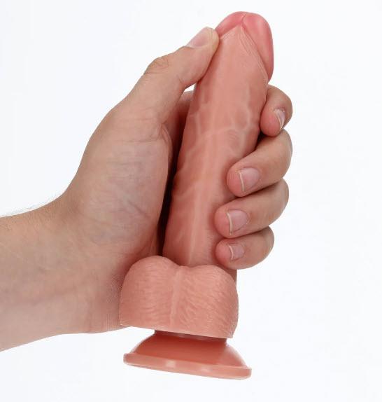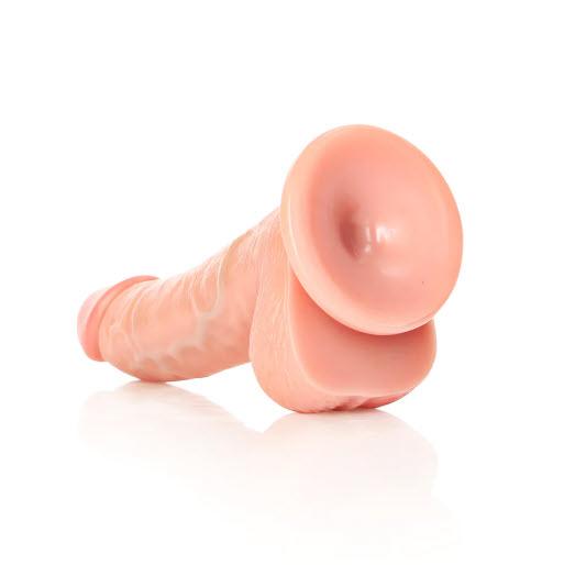 RealRock er designet for å la deg kose deg til det fulle. En fast og myk dildo som ser naturlig ut og har akkurat passe størrelse. I kombinasjon med de realistiske årene på skaftet, som gir ekstra stimulering på innsiden, er dette en dildo som du sent vil glemme på nattbordet. Denne realistiske dildoen har en liten kurve, noe som gjør den ideell for g-punktstimulering. Kos deg med denne modellen innvendig og utvendig! Pungen og velformet glans er detaljene som gjør bruken av denne dildoen så naturtro. Sugekoppen tillater solid håndfri bruk (på en glatt overflate), og gir også muligheten til å bruke denne RealRock i en sele. Med alle disse alternativene vil du få en eksplosiv orgasme som ikke vil mangle noe.