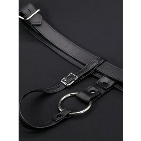 Harness fra Mr S Leather for å holde pluggen på plass.