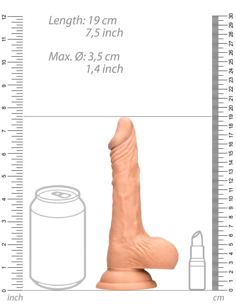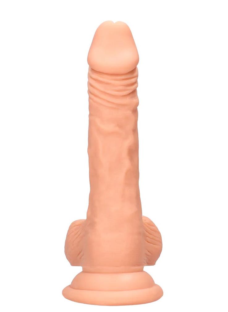 NytHud av fløyelsmyk, naturtro hud med denne utrolig realistiske dildoen. Omhyggelig designet med et uttalt hode, svulmende årer og hengende baller. De supernaturtro formene, teksturene og fargene til denne dong ser virkelig ut og føles som den ekte varen! Dette myke materialet er laget av ftalatfri hud-TPE, og etterligner mykheten til ekte hud og er helt kroppssikkert. Denne vakkert utformede dildoen er laget ved sprøytestøping for å eliminere lukt og defekter og samtidig øke dens termostabilitet og holdbarhet. Den ultrasterke sugekoppen fester seg til nesten alle glatte eller flate overflater. Sugekoppen fungerer også som en selekompatibel base som forblir tett på plass selv når handlingen blir varm!