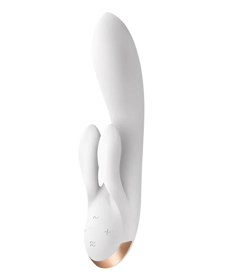 Dobbel fleksibilitet, dobbelt så mye moro! Få strømlinjeformede og kraftige vibrasjoner som former seg etter kroppen din gjennom Silicone Flex-teknologien som er innebygd i den innovative Double Flex i kaninstil! Med tre sterke motorer stimulerer du klitoris, G-punktet og kjønnsleppene samtidig. Med en motor i hver av de mindre skaftene kan du oppleve en bredere og mer intens stimulering rundt klitoris! Double Flex er Bluetooth-aktivert og kobles til den prisbelønte, gratis Satisfyer Connect-appen, som gir deg muligheten til å kontrollere de kraftige motorene uavhengig og virkelig tilpasse nytelsen din. Double Flex er laget av kroppssikker silikon, er oppladbar og er vanntett (IPX7). Fleksibel din Double Flex!