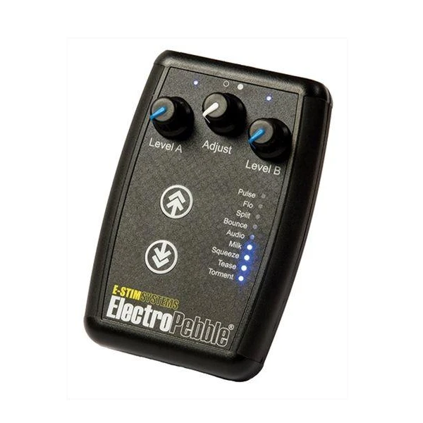 ElectroPebble er mye mer enn bare en e-stim strømboks – den er en glede-boks. ElectroPebble er det nyeste innen strømbokser fra E-Stim Systems, tilgjengelig hos Mister B. Fullpakket med funksjoner og innovasjon, er ElectroPebble ideell for de som er nye innen elektrospill eller de som ønsker mer enn bare en grunnleggende enhet. Ergonomisk designet kan ElectroPebble virkelig gi en sterk følelse med doble kanaler, Soft Touch Stepless Level Controls og 9 justerbare programmer. Som en enhet med doble kanaler kan 2 elektroder brukes samtidig slik at du kan spre sensasjonene over flere punkter på kroppen. Hver kanal har sin egen Stepless Level Control som lar deg sette nøyaktig hvilket nivå av glede du ønsker. De 9 programmodusene er justerbare, noe som gir et enda større spekter av sensasjoner og muligheter, og å bytte mellom moduser kunne ikke vært enklere. ElectroPebble har også en Lydmodus med innebygd mikrofon. Den lar deg skape dine egne sensasjoner ved å spille musikk eller lage dine egne lyder. Lydsignalet driver utgangssignalet og produserer flotte sensasjoner som du kontrollerer. Som nytt i E-Stim Systems-serien har ElectroPebble LifeLine-displayet. En serie med lyse LED-er utgjør LifeLine, som pulserer i ulike mønstre som samsvarer med gjeldende modus, samt modusjustering slik at du kan få en god idé om hva ElectroPebble “tenker”. ElectroPebble leveres i en spesiallaget bæreveske, sammen med to 2 mm til 3,5 mm utgangskabler, batteri, en pakke med 4 selvklebende elektrodepads, en rask guide og selvfølgelig en omfattende bruksanvisning – alt du trenger for å komme i gang. ElectroPebble er designet og produsert i Storbritannia i samsvar med de nyeste britiske og EU-sikkerhetsforskriftene, med innebygde sikkerhetsfunksjoner som strømbegrensning og CE-merket, samt dekkes av en livstidsgaranti.