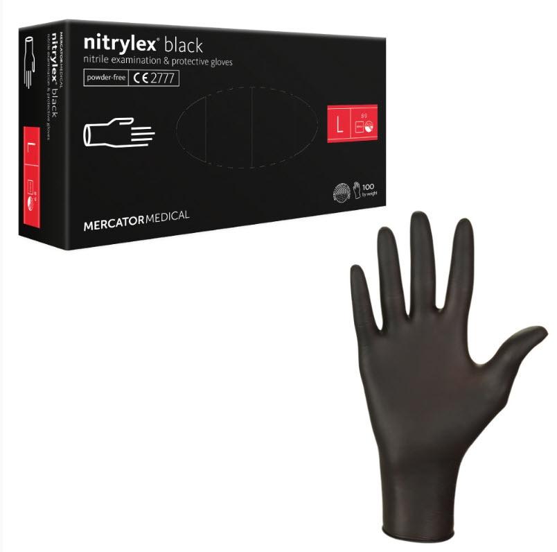 Sorte engangshansker av sterk nitril i høy kvalitet, uten latex og silikon. Produsert av anerkjente MERCATOR.