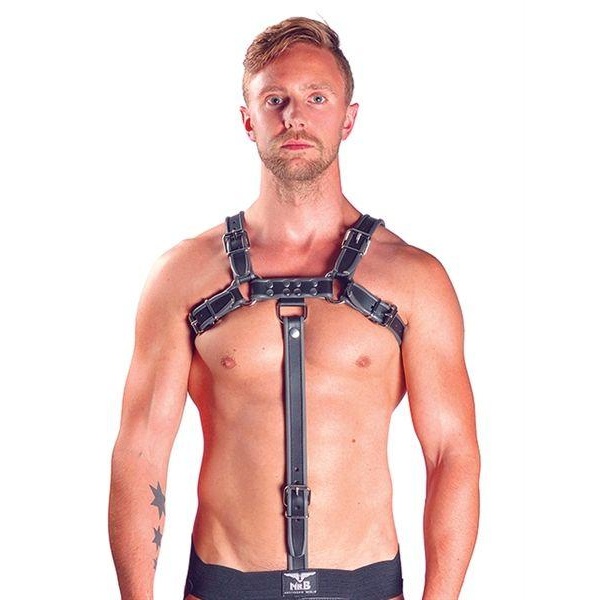 Forlengelser til harnessen din, hele veien ned! Et trekk i harnessen er et rykk nedover. Samme farge og materiale som harnessen. 100% ekte sal-lær. Stroppene er foret med mykere lær i forskjellige farger som matcher overkroppsharnessen. Den medfølgende penisringen har en diameter på 55 mm. Som harnessen er stroppen justerbar med en spenne. Kommer med striper i fargene: svart, rød, grå og blå