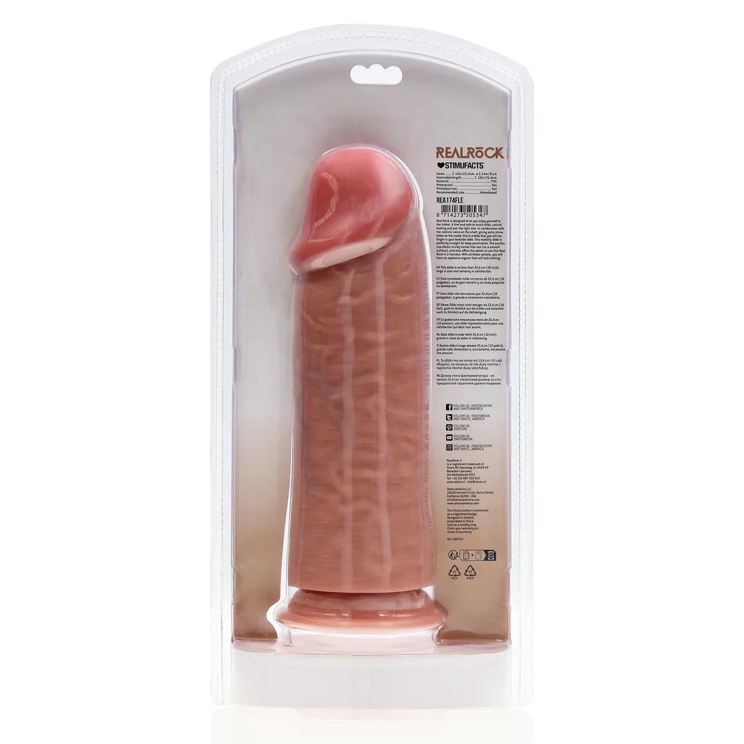 RealRock er designet for å la deg kose deg til det fulle. En fast og myk dildo som ser naturlig ut og har akkurat passe størrelse. I kombinasjon med de realistiske årene på skaftet, som gir ekstra stimulering på innsiden, er dette en dildo som du sent vil glemme på nattbordet. Denne realistiske dildoen er helt rett for dyp penetrasjon. Pungen og velformet glans er detaljene som gjør bruken av denne dildoen så naturtro. Sugekoppen tillater solid håndfri bruk (på en glatt overflate), og gir også muligheten til å bruke denne Real Rock i en sele.