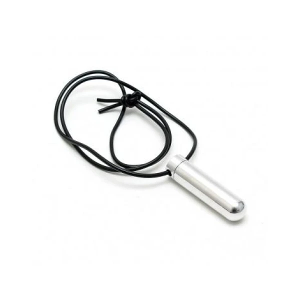 Flott halskjede i aluminium med skinnreim. Dette er ikke bare ett smykke, men også et praktisk tilbehør for aromaelskere. Åpne opp beholderen og putt inn litt bomull eller ett lite tøystykke og dypp den i din favoritt aroma. På denne måten kan du enkelt ta med deg din favoritt-aroma på fest uten å bekymre deg for søl.