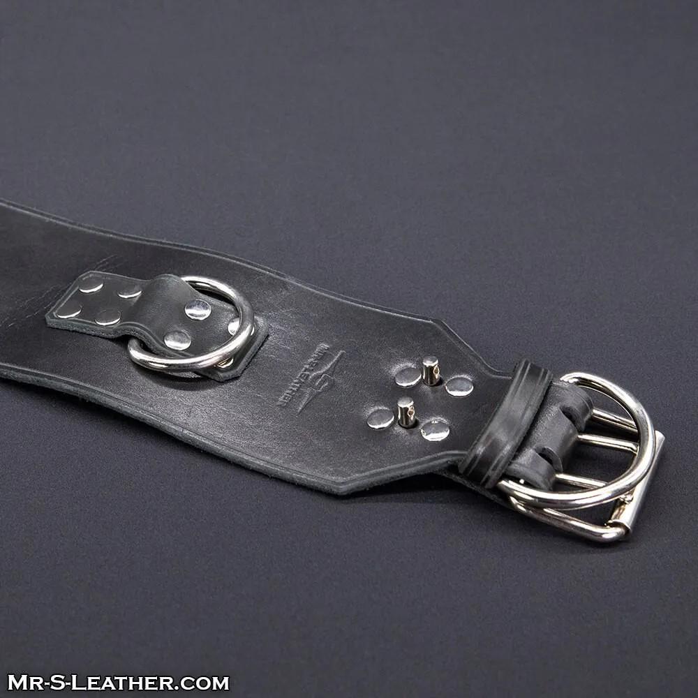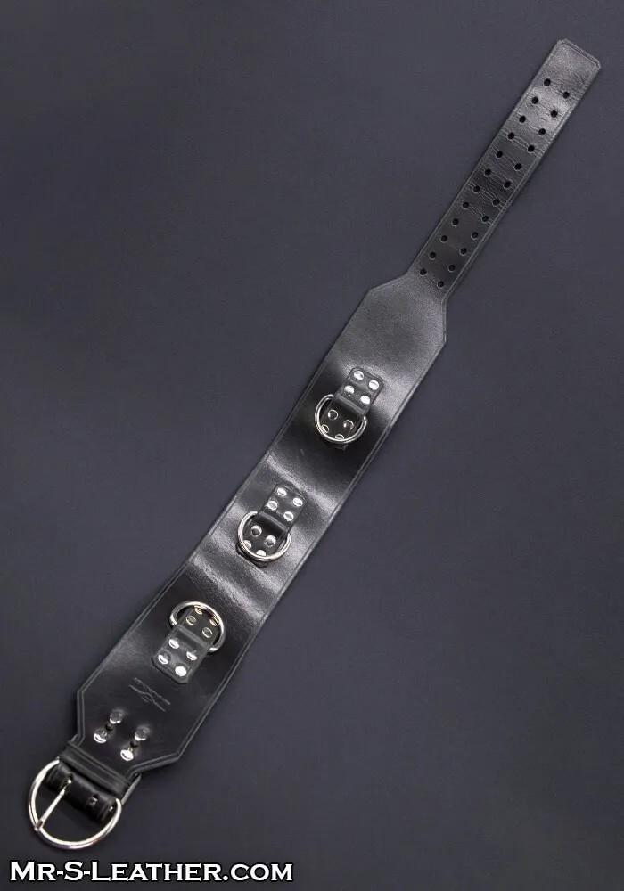 Forankre guttens overkropp med vårt låsbare midjebelte, slik at bevegelsene hans er begrenset uansett hva du gjør med ham. Det 10 cm brede latigo-lærbeltet lukkes med en justerbar rullespenne og inkluderer to låsestolper for ekstra sikkerhet. Fire D-ringer er spredt langs midjen, slik at du har alle festepunktene du trenger for å sørge for at han holder seg der du vil ha ham.