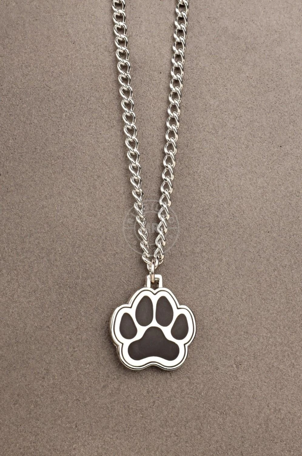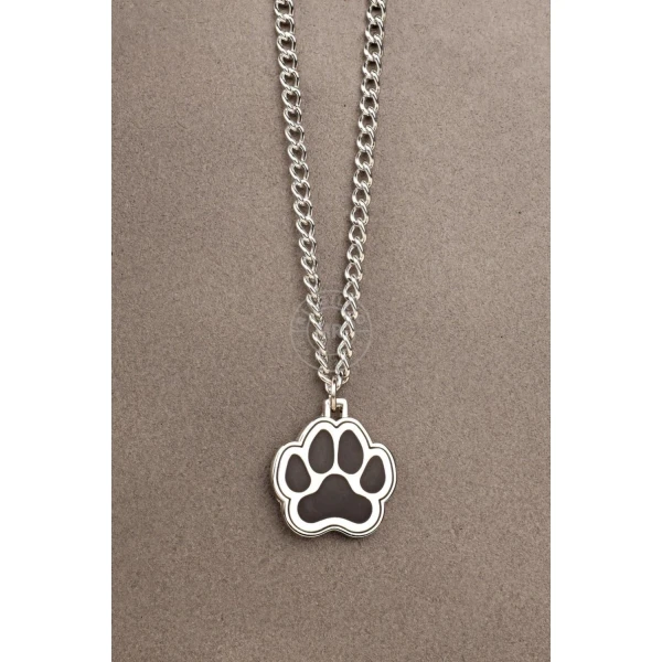Den kraftige kjeden i rustfritt stål (60 cm) har et søtt, men likevel dristig valpepoteanheng – et symbol på leken underkastelse og lojalitet. Snu den, og du vil finne den diskré « Husets herre» -logoen gravert på baksiden, som holder deg knyttet til huset uansett hvor du beveger deg.