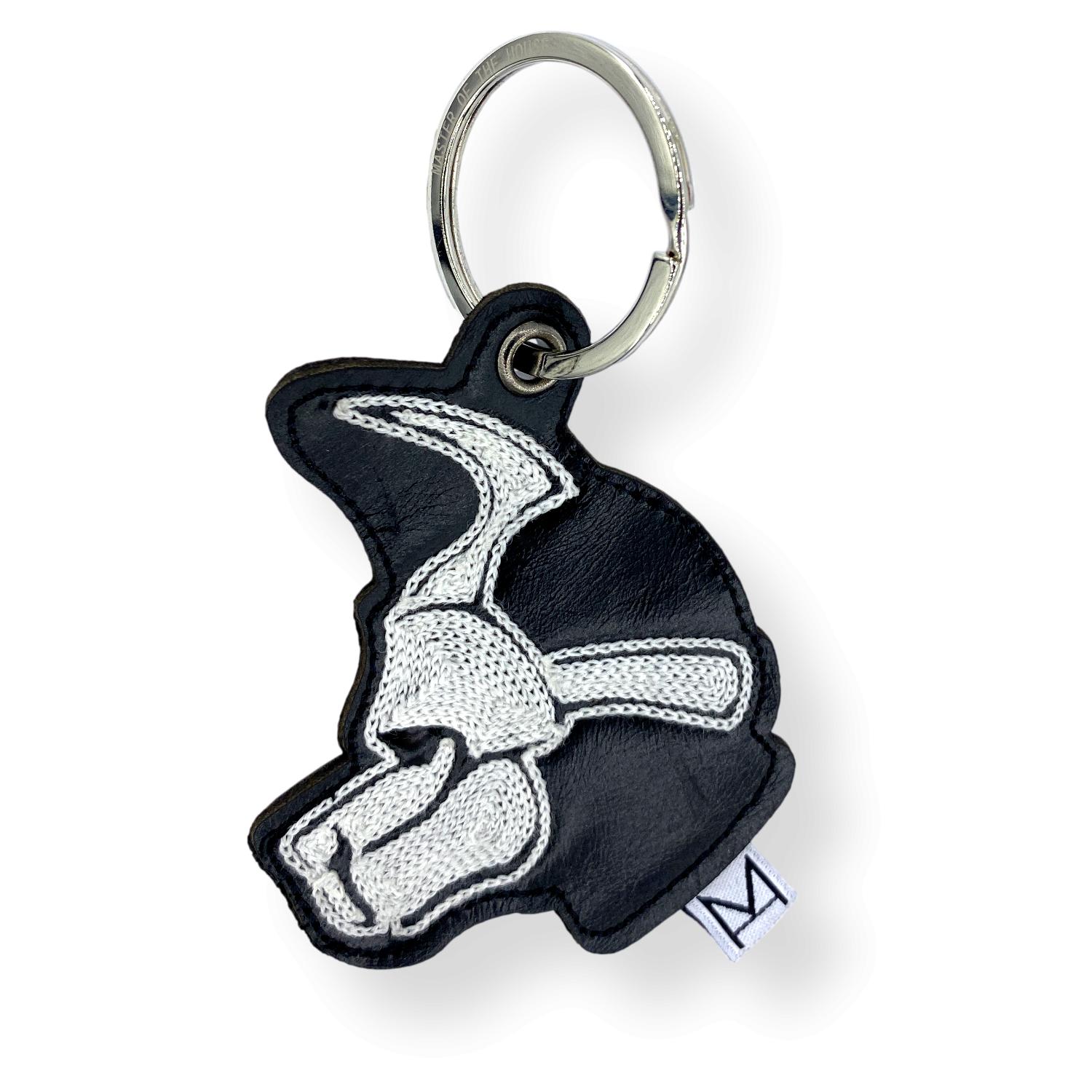 Den eksklusive lærnøkkelringen er forbedret med broderi og har en polert flattråd med merkevarelogo. Inkluderer “Master of the House” logomerke.