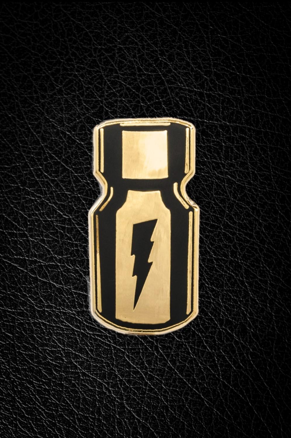 Hard emaljepins i gullfarge med matte svarte detaljer. Den er 3,5 cm høy og har to sikkerhetslåser. Alle pins har logo og et unikt serienummer lasergravert på baksiden og er laget i begrenset opplag.