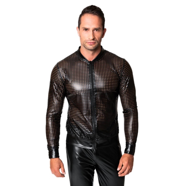 Slående bomberjakke, designet for de som liker å gi et dristig uttrykk. Denne unike jakken har et iøynefallende perforert mønster som gir en moderne og edgy vri til ethvert antrekk, perfekt for kinky arrangementer, swingerfester eller alle som ønsker å skille seg ut.