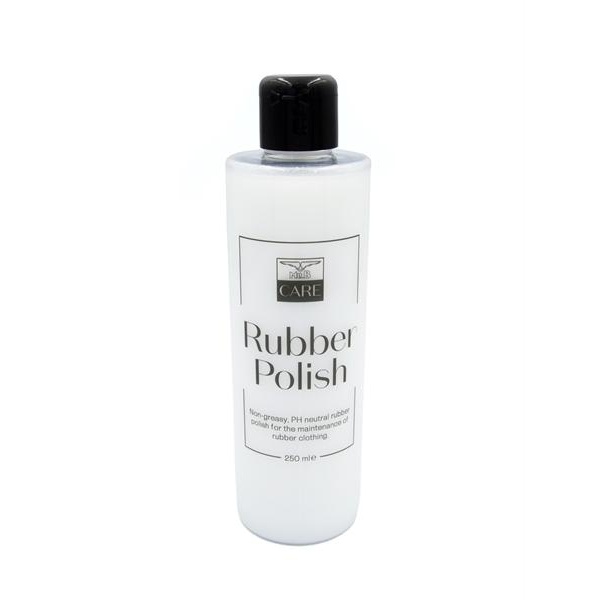 RUBB rubberpolish er et mildt vaskemiddel for klær laget av gummi og lateks. Denne ikke-fettete væsken vil forynge gummien og gi tilbake den opprinnelige glansen.