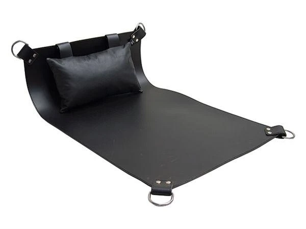 Mister B har laget en solid slynge i sal-lær med fire festepunkter og en deilig pute. Så i denne kan du bare legge deg bakover, og nyte! Puten kan enkelt fjernes om ønskelig. Størrelse omtrent 100 x 60cm. Det er trygt å si at Mister B-slyngene er solide nok til å bære (nesten) alt. Slyngen kommer ikke med kjettinger, eller kroker til taket. Disse tingene anbefaler vi å kjøpe fra en skikkelig jernvarehandel, så slipper du å risikere at kjettingene ryker, mens du nyter heftig og grisete lek i slyngen.