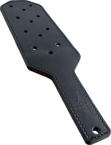 Smekk det, pisk det, slå det med Mister B IMPACT. Mister B IMPACT Leather Paddle With Holes Large er en kraftig sextoy som kan svi som ingen morgendag. Denne glatte skinnpadlen er stor nok til å treffe begge rumpeballene samtidig. Den er laget av solid salærskinn og har en preget Mister B-logo på håndtaket.