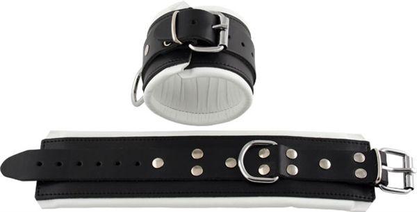 Mister B Leather Ankle Restraints Black White Padding