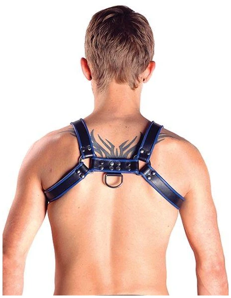 Den nyeste tilskuddet i Mister B`s utvalg av harnesser. En vakker overkroppsharness som får deg til å se bredere ut ved å skyve skuldrene litt bakover. Laget av 100 % ekte sal-skinn. Alle stroppene er foret med mykere skinn i forskjellige farger, noe som gir denne selen sitt distinkte, moderne kinky utseende. Justerbar med spenner. Finnes med striper i fargene: svart, rød, blå og grå.