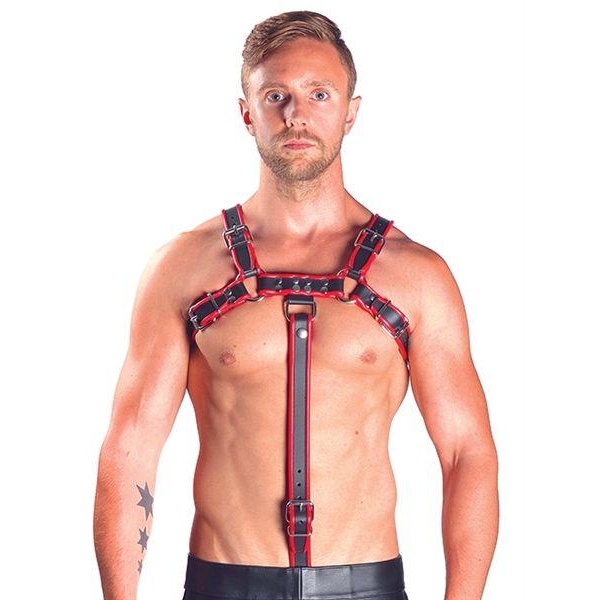 Forlengelser til harnessen din, hele veien ned! Et trekk i harnessen er et rykk nedover. Samme farge og materiale som harnessen. 100% ekte sal-lær. Stroppene er foret med mykere lær i forskjellige farger som matcher overkroppsharnessen. Den medfølgende penisringen har en diameter på 55 mm. Som harnessen er stroppen justerbar med en spenne. Kommer med striper i fargene: svart, rød, grå og blå