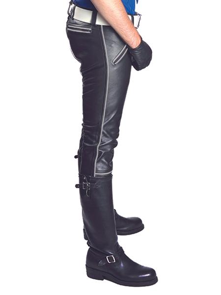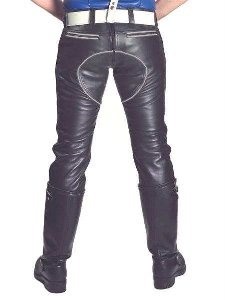 Mister B FXXXer-jeansene er en av de mest sexy skinnbuksene de lager. Håndlaget i deres skinnverksted av sterkt, men likevel smidig 100 % anilin fullnarvet kuskinn. Hovedtrekkene ved disse fantastiske skinnjeansene er trekkstykket – som fremhever skrittet – og de dekorative pyntene langs lommene, rumpebukken, sidene av bena og på trekkstykket.