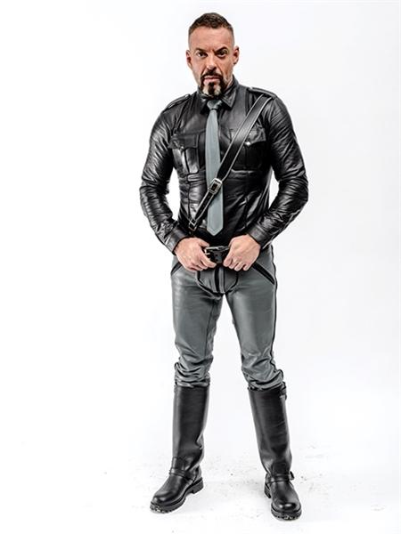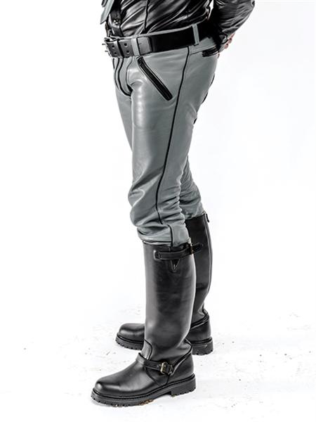 Mister B FXXXer Jeans er en av de mest sexy skinnbuksene som Mister B lager. Håndlaget i deres skinnverksted av sterkt, men likevel smidig 100 % anilin fullnarvet kuskinn. Hovedtrekkene ved disse fantastiske skinnjeansene er stoffstykket – som fremhever skrittet – og de dekorative pyntene langs lommene, rumpebuen, sidene av bena og stoffstykket.