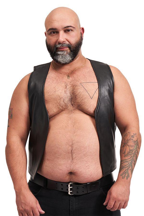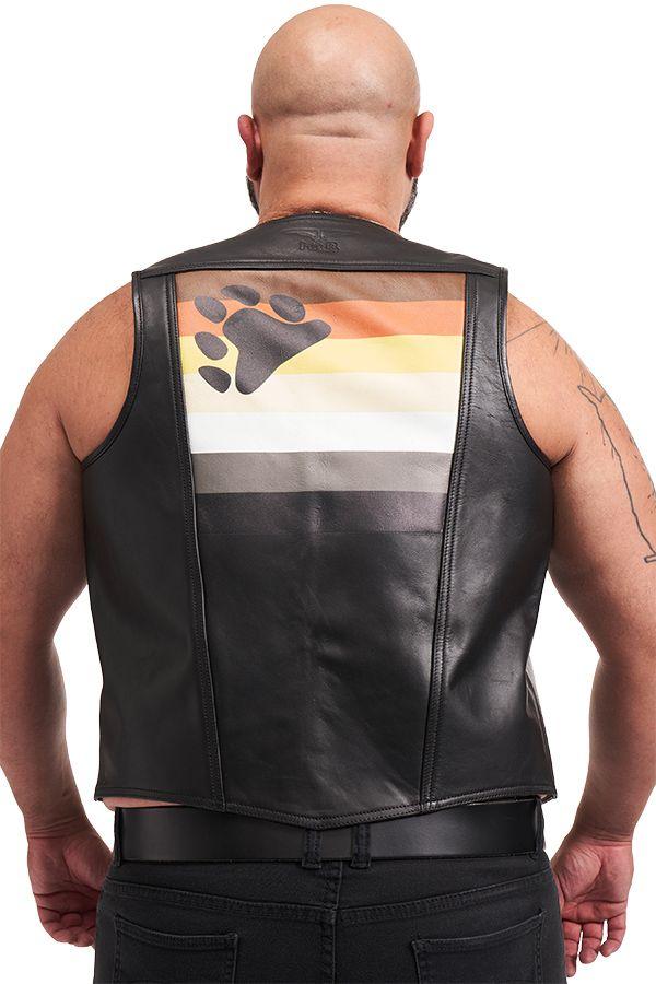 Hei store gutter, denne er for dere! Vis dem hvem dere er eller hva dere driver med med Mister B Leather Muscle Vest Bear. Bruk denne skinnvesten med klassisk passform og Bear Pride-flagget på ryggen, og gjør alle bass- og knurrerne sjalu og kåte på én gang. Denne skinnvesten av topp kvalitet vil vare livet ut med fester og bjørnearrangementer, og er tilgjengelig i størrelser opptil 5XL! Det er en STOR greie for oss store gutter!