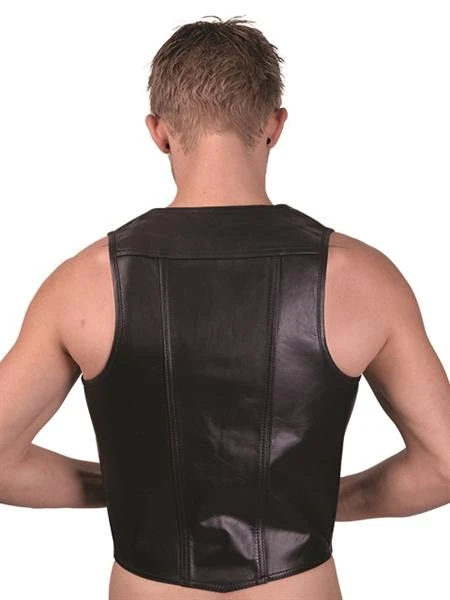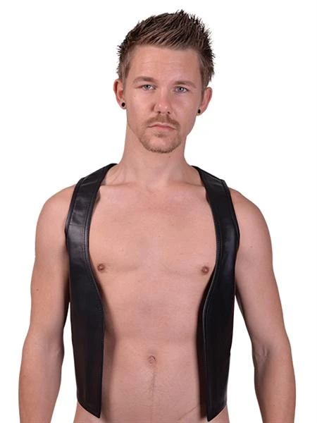 Mister B Leather Muscle Vest er en moderne europeisk designet barvest som er ment å etterlate brystet og brystvortene halvveis eksponert. Glem alle de gammeldagse, kjedelige barvestene som finnes andre steder, og velg denne supersexy varianten for å fullføre ditt lærantrekk!