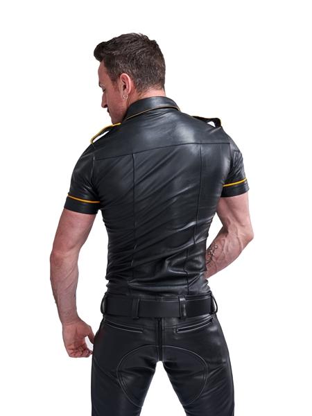 Disse Mister B-skinnpolitiskjortene er ikke noe du bør gå glipp av når du går for et komplett skinnuniformutseende. Laget av de mykeste skjorteskinnene som er tilgjengelige på markedet og håndlaget i deres skinnverksted av sterkt, men smidig 100 % anilin fullnarvet kuskinn.