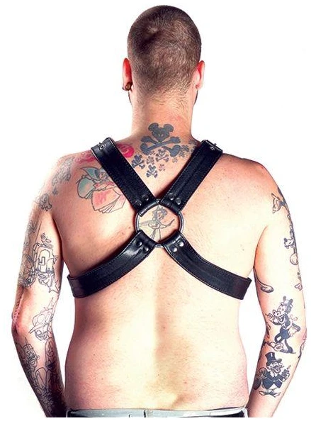 Mister B Leather Bear Harness Top gir et robust utseende. Enten du er en bamse, en cub, en oter eller noen andre, vil dennee harnessen få deg til å se sterk, solid og heit ut! Med en stor metall O-ring i midten og tykke, svarte, 4 cm brede skinnreimer vil du skille deg ut som en ekte kjekkas på festen. Denne harnessen er unik fordi den er laget av mykere skinn, som er brettet over, fôret og deretter topstitched. Denne overkroppsharnessen er svært justerbar med fire forskjellige spenner, slik at den passer for dere med større eller mindre bryst, mage eller overkropp.