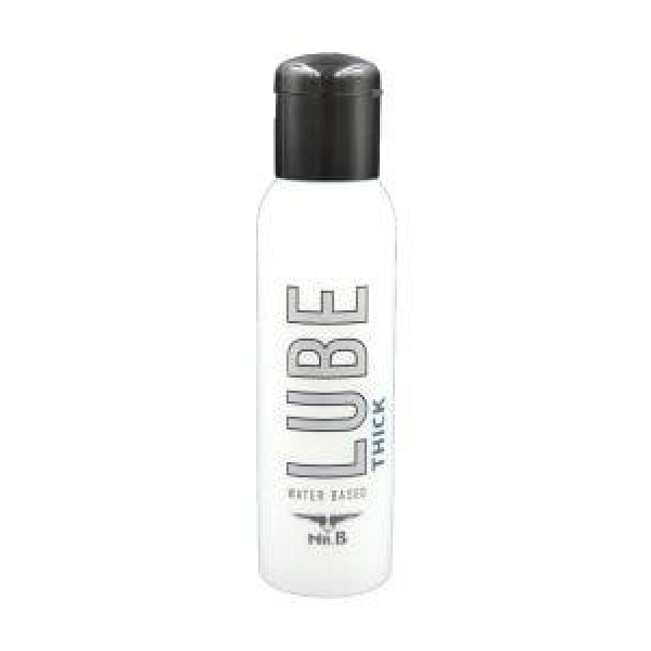 Mister B LUBE Thick kommer i en flaske med flip-top-kork som er enkel å åpne og lukke, selv med glatte fingre. Tilgjengelige størrelser: 100 ml, 250 ml og 500 ml. Dette glidemiddelet er et svært prisgunstig, allsidig vannbasert produkt som føles fløyelsmykt og varer lenger enn før. Det kan kombineres med alt.