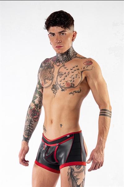 Mister B Neoprene V-Shaped Shorts Open Back Black Red