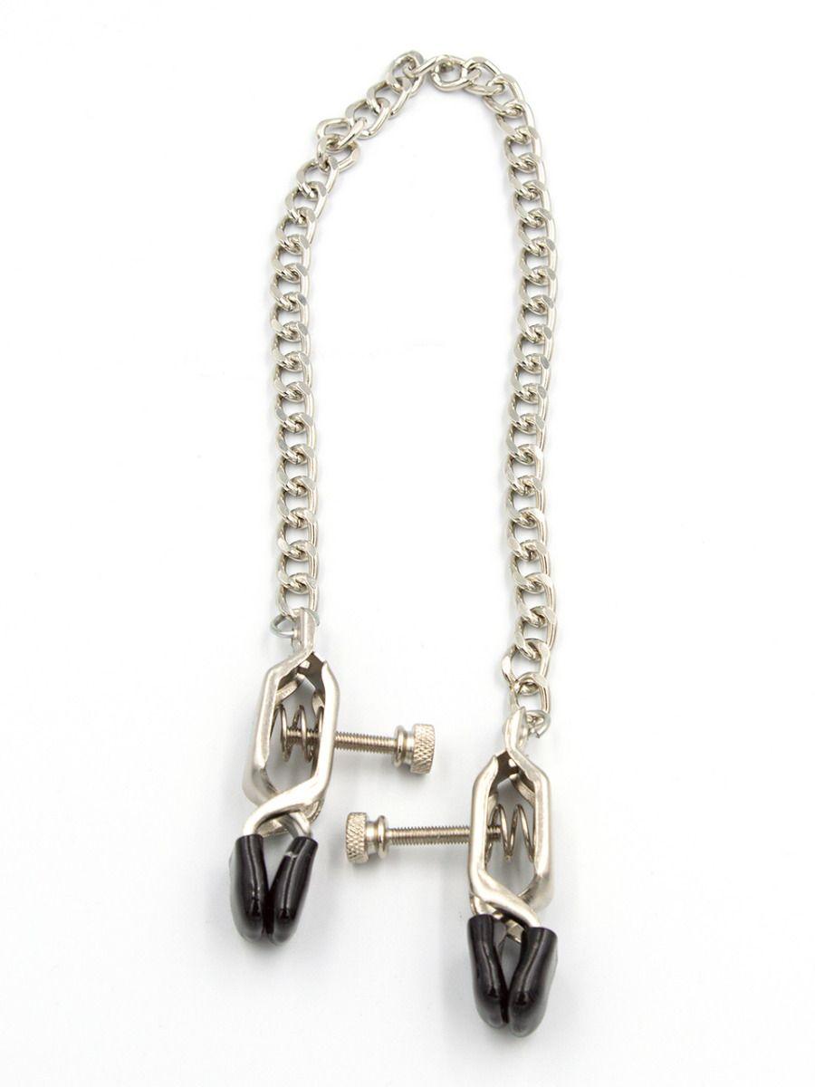 Mister B PINCH gjør så vondt, men på en god måte! Mister B Pinch Battery Clamps er svært effektive nippelklyper. Designet er inspirert av bil- og elektronikkbransjen, så du vet at dette er en klype som vil holde. Trykket er konstant på disse klemmene på grunn av fjæren i midten, mens justeringsskruene kan bestemme hvor mye trykk som påføres. Den sexy kjeden kobler de to sidene slik at du kan dra i nippelene sammen, for å skape en like smertefull og nytelsesrik opplevelse.