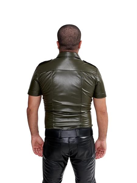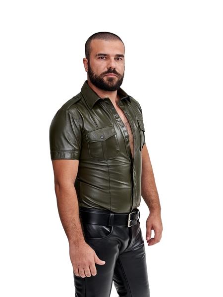 Disse skjortene er tettsittende slik at de følger konturene av overkroppen din fint, siden et sexy utseende ikke passer godt med baggy skjorter. Mister B-politiskjortene i skinn har korte ermer, skulderstropper og to brystlommer.
