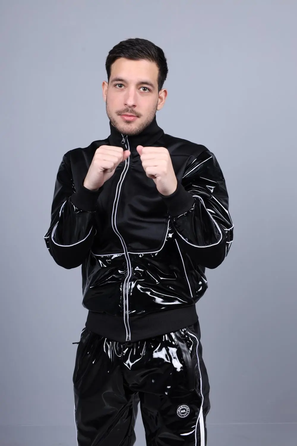 – Skinnende svart MR. 24 PVC Tracksuit Jacket med front- og bakpaneldetaljering.