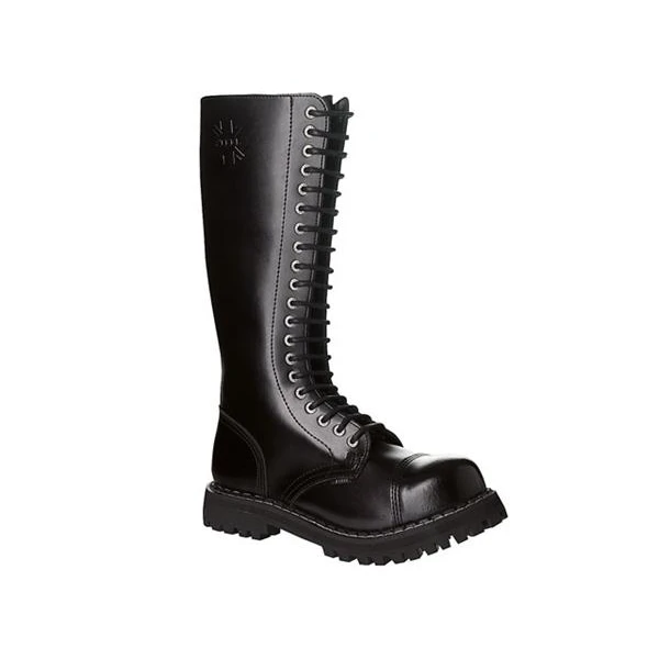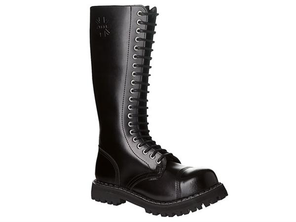 Disse rå lekre 20-hulls Skinhead-støvlene er av topp kvalitet. Ekte skinn med en myk matt glans, tåhettte i stål, og skruer i gummisålen: Dette er støvlene du vil ha til fetish antrekket ditt.