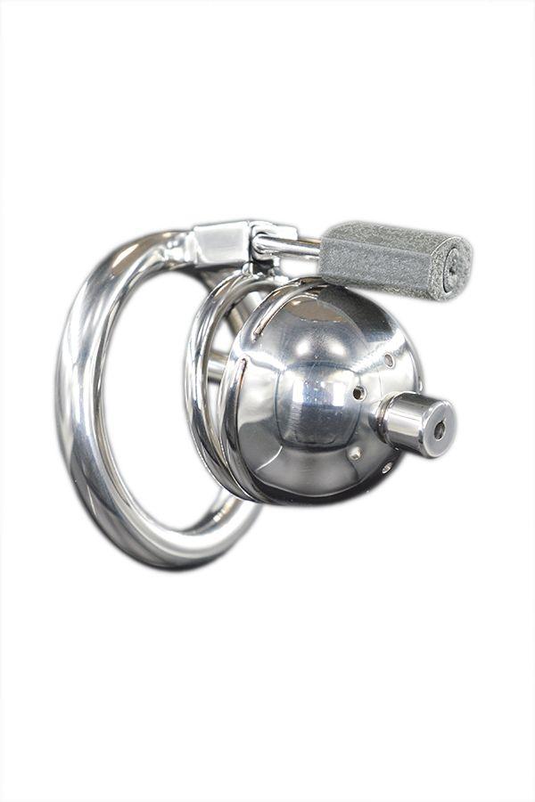 Dette stålkyskhetsburet har en ring på 45 mm og leveres med en lås og nøkkel.